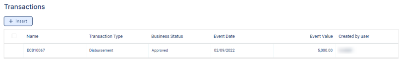 You can see the disbursement transaction's details and the calculated repayment schedule by double-clicking the transaction.