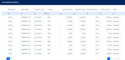 You can find all the existing transactions, payments, penalties, bank account operations, repayment schedules, schedule versions, repayment notifications for a contract on the Payments tab. The tab has no information to display for contracts in Draft status. Approve the contract to perform any transactions on the contract. Meaningful payment information is displayed here only after performing a disbursement.