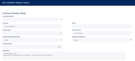 Description - The description of the contract penalty detail. It contains the total penalty value, the penalty percent or value applied to the number of overdue, and the delay days for calculation.