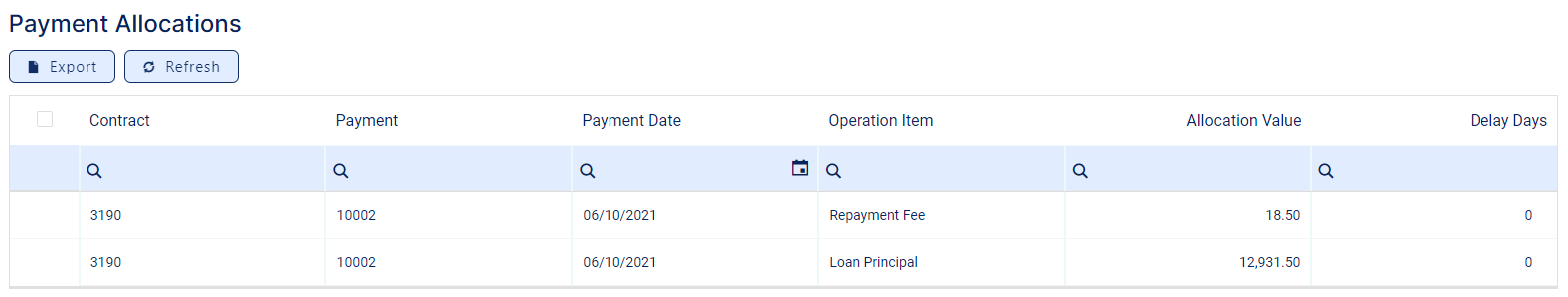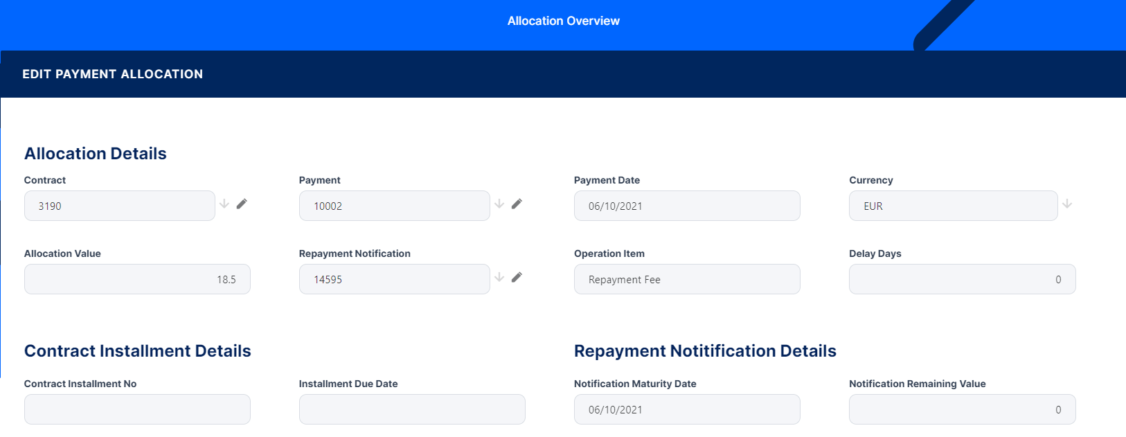Allocated Amount - The amount that was already allocated as a contract's repayment for a notification for the selected customer.
