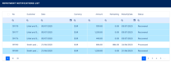 Repayment notifications highlighted in blue are already paid, allocated or closed to payment, while the ones not highlighted remain to be paid.