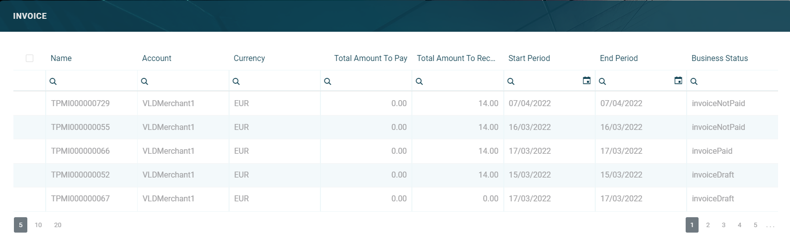 Payment Periodicity (daily, monthly, or weekly).Users with the associated role of Loan Admin Officer or Retail Credit Officer can insert, update, or delete third-party invoice records. Users with the other associated Core Banking security roles can only view such records.