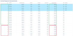 Later, after contract approval, the contract repayment schedule is calculated taking into consideration the contract interest rates as defined in this section. For example, for a multiple interest rates, the installment amounts differ depending on the interest rate applicable for those installment numbers. The picture below shows different values calculated for the repayment schedule of a loan with multiple interest rates, where an interest rate was applied for the first 12 installments, and another interest rate was applied for the rest of the installments.