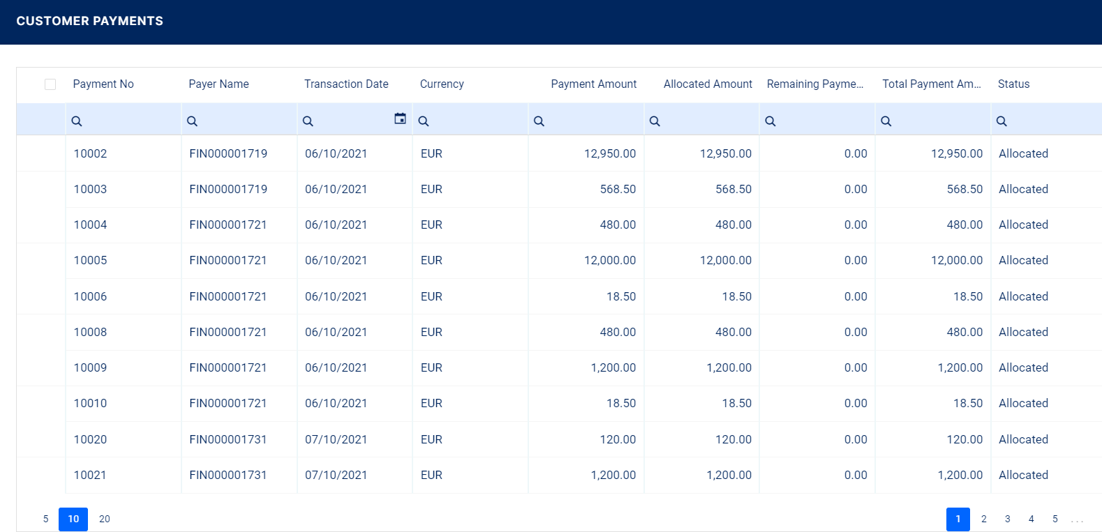 Allocated - the status of a record after its entire amount gets allocated as payment for a repayment notification. There is no further transition from this status.