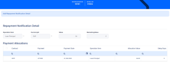 This section is empty for payments in Draft or Unallocated status. The payment allocations for due repayment notifications are automatically calculated by Core Banking and they are displayed after the record reaches the Allocated or Partially Allocated status.