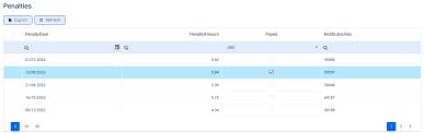 View basic information about the penalties in the list, such as penalty date, amount, notification number and whether it was paid or not. Payed penalties are also highlighted in blue, for your convenience.