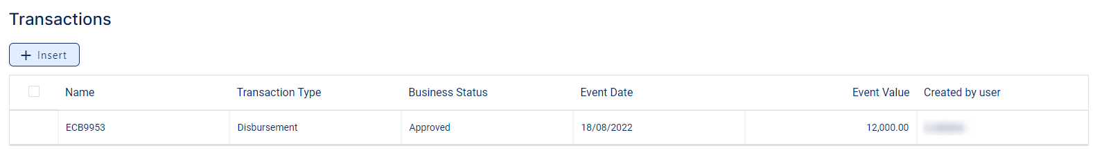 Here you can see only basic information about the transactions, such as event number, status, date, transaction type, value and the user who created it. -