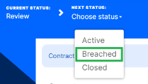 If the covenant's terms are not met, change the covenant's status to Breached and confirm your action. -