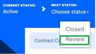 On the newly displayed Contract Covenant page, change the covenant's status to Review and confirm your action.