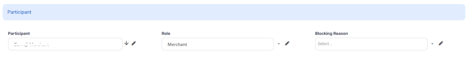 On the displayed Participant page, in the Blocking Reason field, choose the reason for blocking the selected participant from accessing the contract.