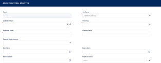 To add a new collateral register record to the customer, follow these steps: