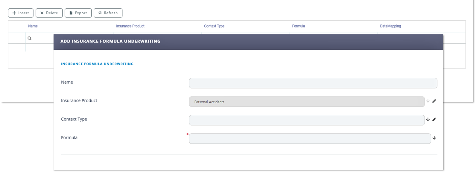 Prerequisite: In order to create an Insurance Product, at least one Insurance Type must be defined!