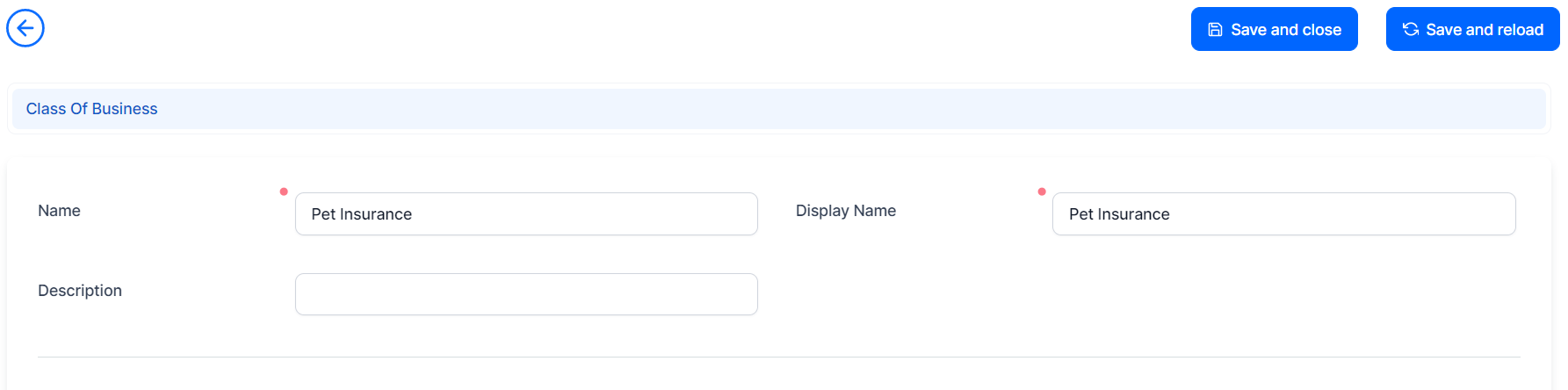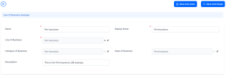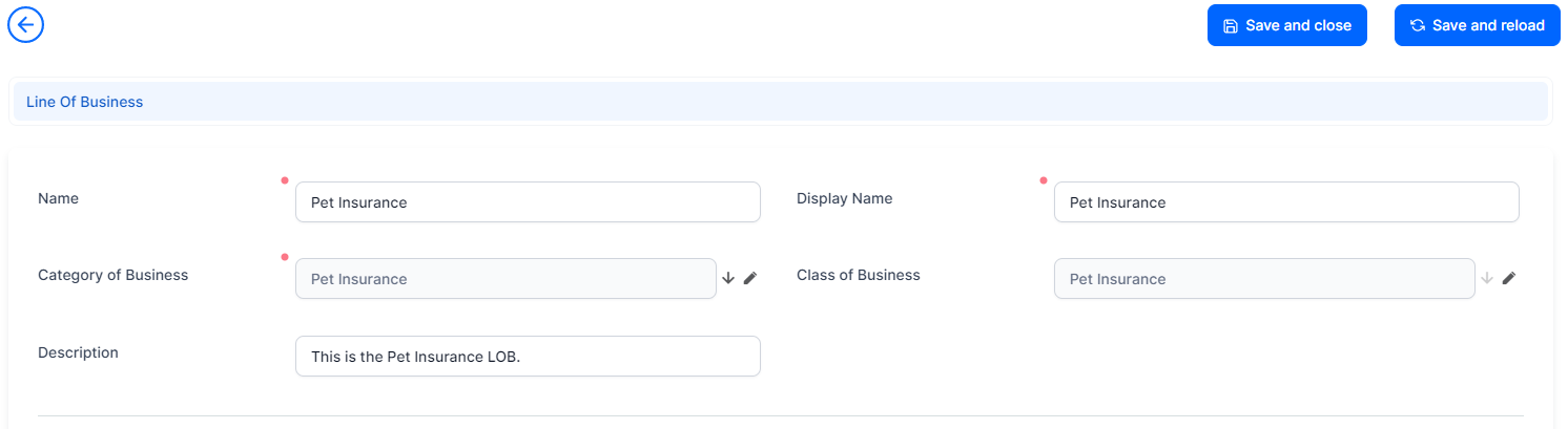 9. Click Save and Close. The record is displayed in the Line of Business (LOB) grid.