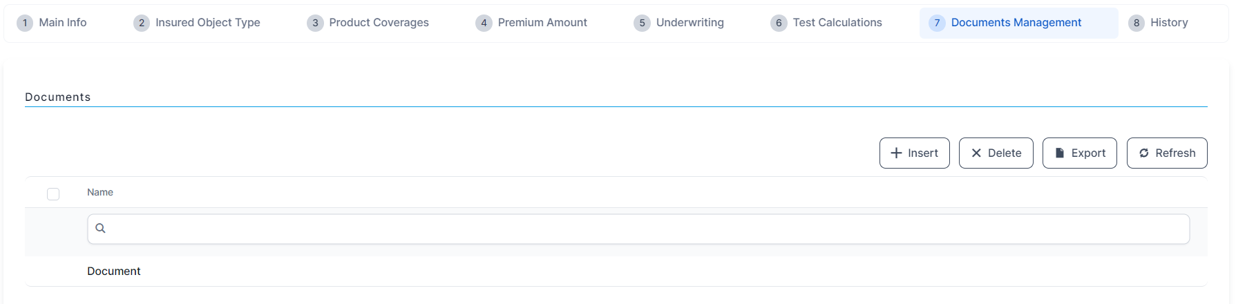 In the Documents Management tab, click Insert. The Add Document form is displayed.