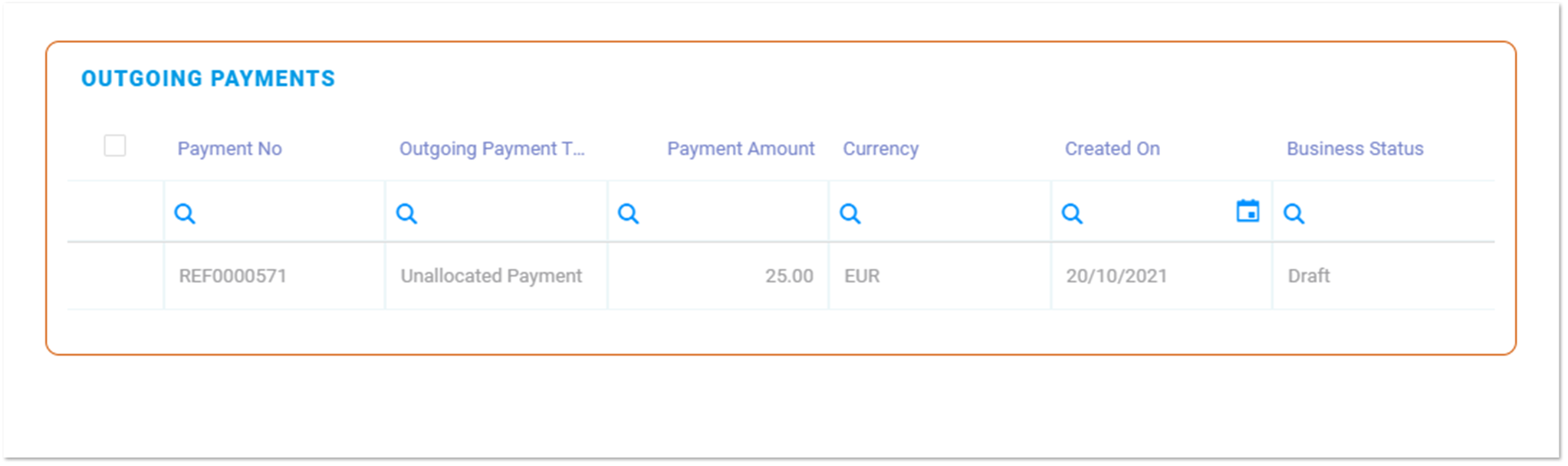 When you press Return, you create a request for payment, in Draft status. Inside the Unallocated Payment record, scroll down to the Outgoing Payments section and double-click on the Draft request to open it.