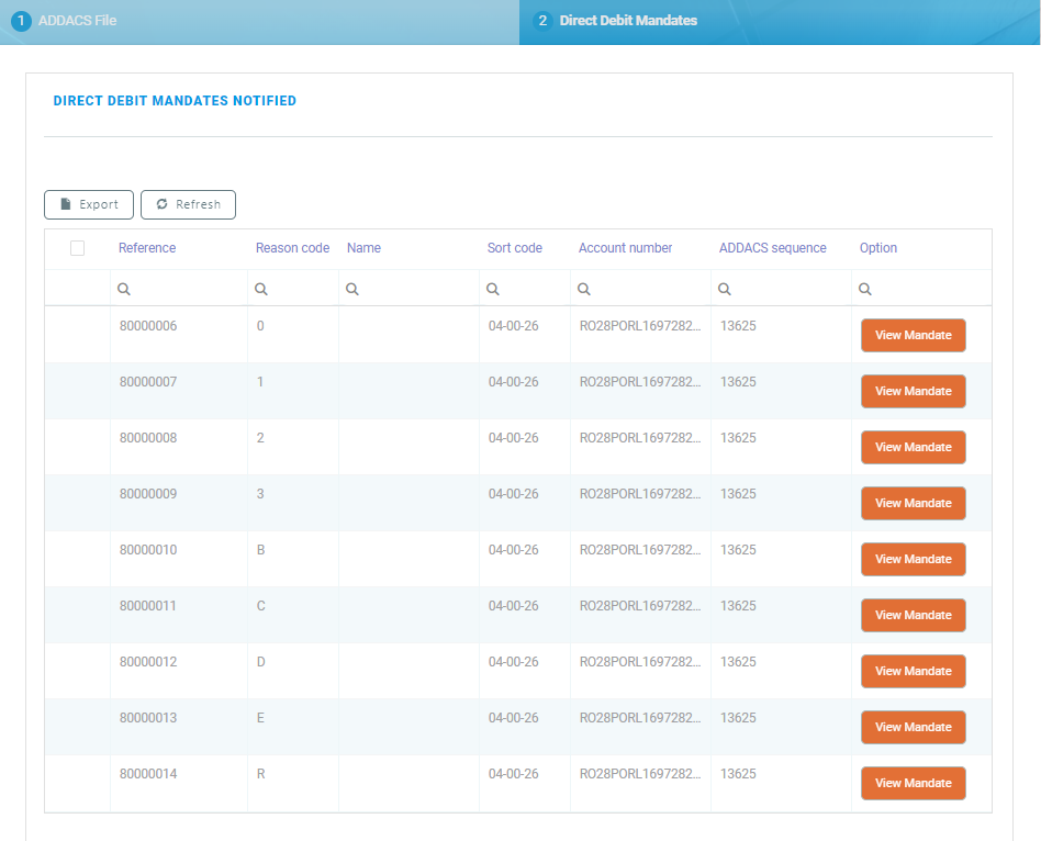 Follow the steps below to view the UK direct debit mandates registered into your system: