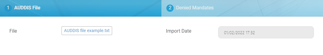The AUDDIS Files section contains details about all the requests for direct debit payment that were denied and are registered into your system. If necessary, you can also manually import AUDDIS reports.