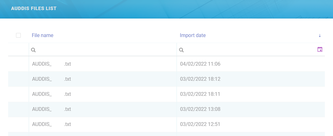 In this section, manual file import is possible. An AUDDIS file must have .csv.txt format in order to be processed and stored by the system.