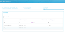 A History tab is available for each Master Policy with all the versions related to it, in order to keep track of the version number, starting from 1.