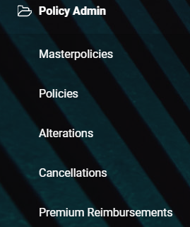 In FintechOS Portal, in the menu, under the Quote and Apply section, the Policy Admin section is found, containing the Masterpolicies subsection.