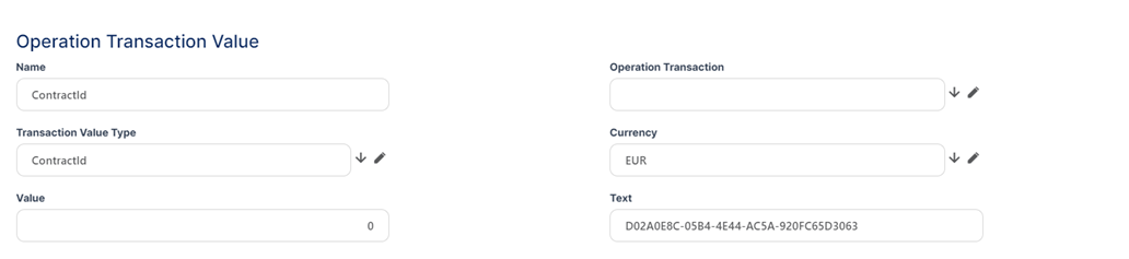 To add a new operation transaction value, click the Insert button under the Operation Transaction Values section. The Add Operation Transaction Value page opens.