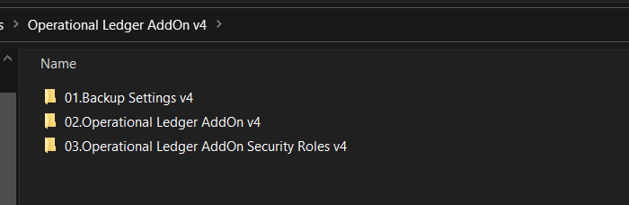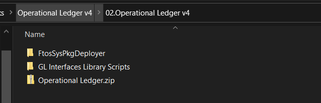 Eachzipfile within the Operational Ledger v4.0.zip must be extracted and installed separately, in the given order!