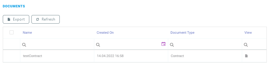 For the Documents section, the following data is displayed: