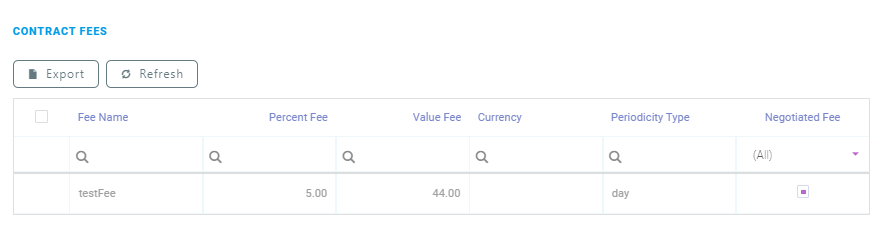 For the Contract Fees section, the following data is displayed: