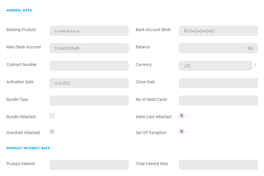 Product Interest: The interest rate applied to the banking product.