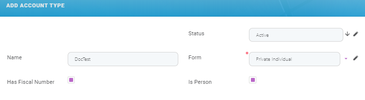 Has Fiscal Number: If you select this checkbox, then this account type has a fiscal registration number (UTR).