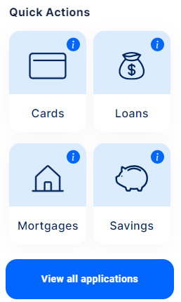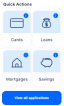 View the following product categories: Cards, Loans, Mortgages and Savings.