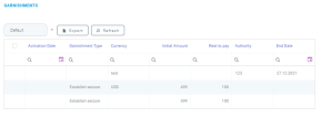 Here, you can view the following garnishment types: Default, Active Garnishment, Canceled Garnishment, Suspended Garnishment, Closed Garnishment, Garnishment Paid in Full, Active Seizure, Closed Seizure, Active Insolvency, Closed Insolvency, Expired Insolvency, Expired Seizure and Expired Garnishment.
