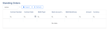 Customer's set automatic payments are displayed in the Standing Orders tab. Automatic payments are fixed amounts set by an account holder to be withdrawn by the bank at a specific date to pay their recurring expenses.
