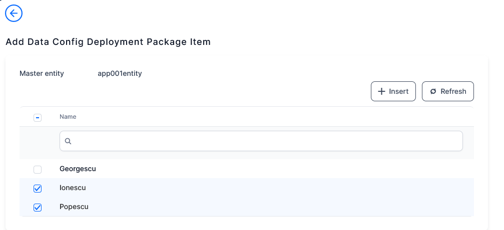 - Click Insert in the grid at the bottom of the page and select the items (records) to be included in the package.