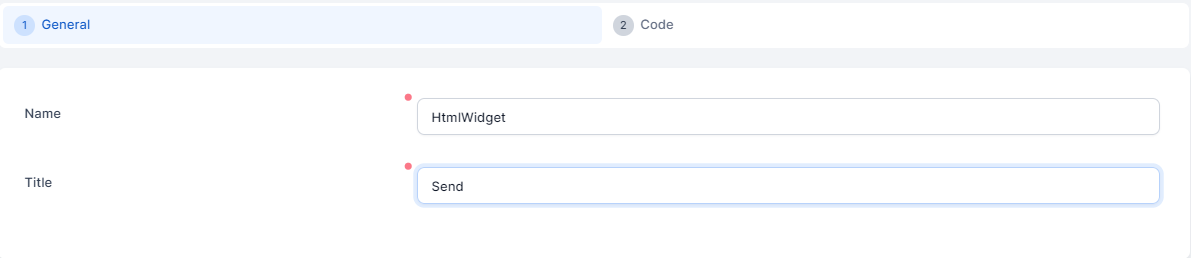 - In the Name field, provide the name of the HTML widget to be used by the system.