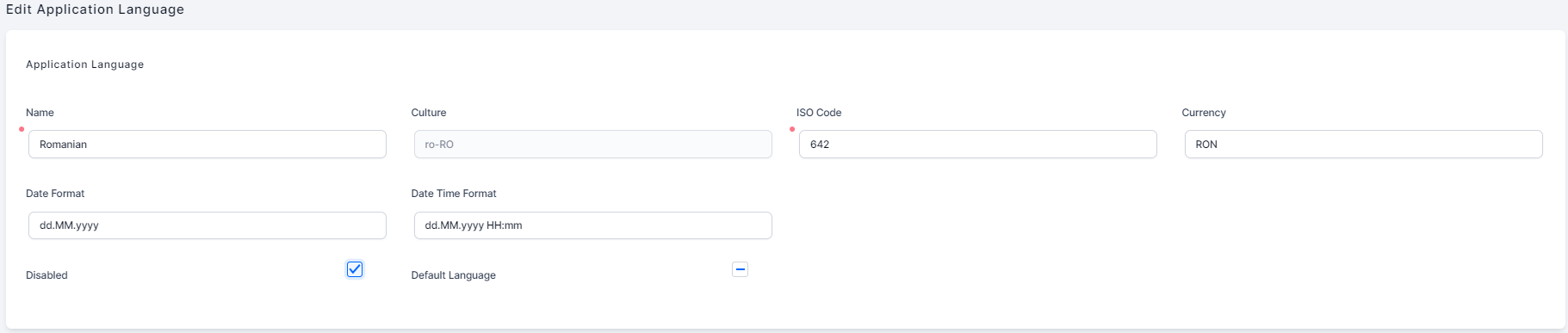 | Disabled | True, then the language is disabled and will not appear in the list of available languages in the UI. |