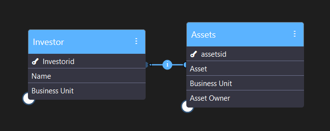 In the example below, the Investor entity is referenced by the Assets entity.