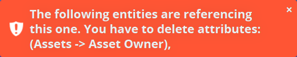 Attempting to delete the Investor entity without deleting the relationship first, generates the following warning:
