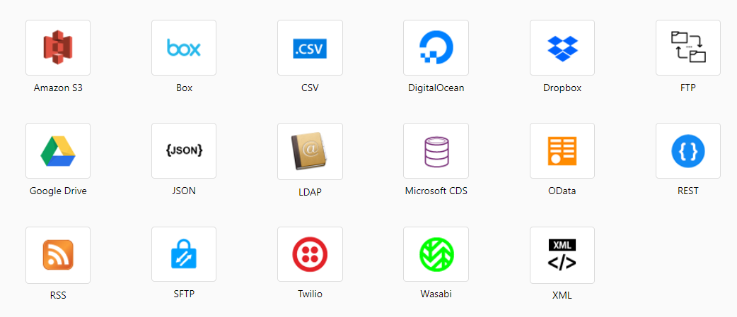 Data Pipes come with built-in connectors which allow you to replicate data from a variety of external data sources: