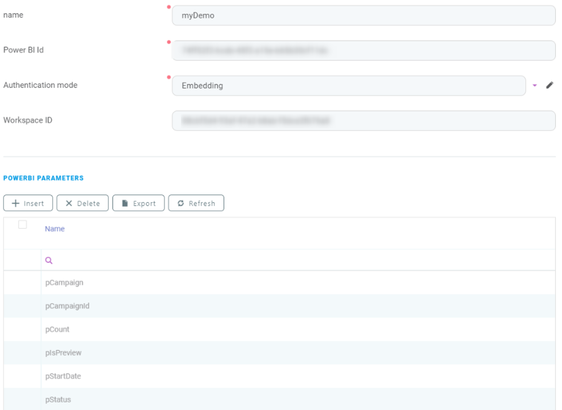 - Name - The name of PowerBI parameter record, child of PowerBI report record from FintechOS.