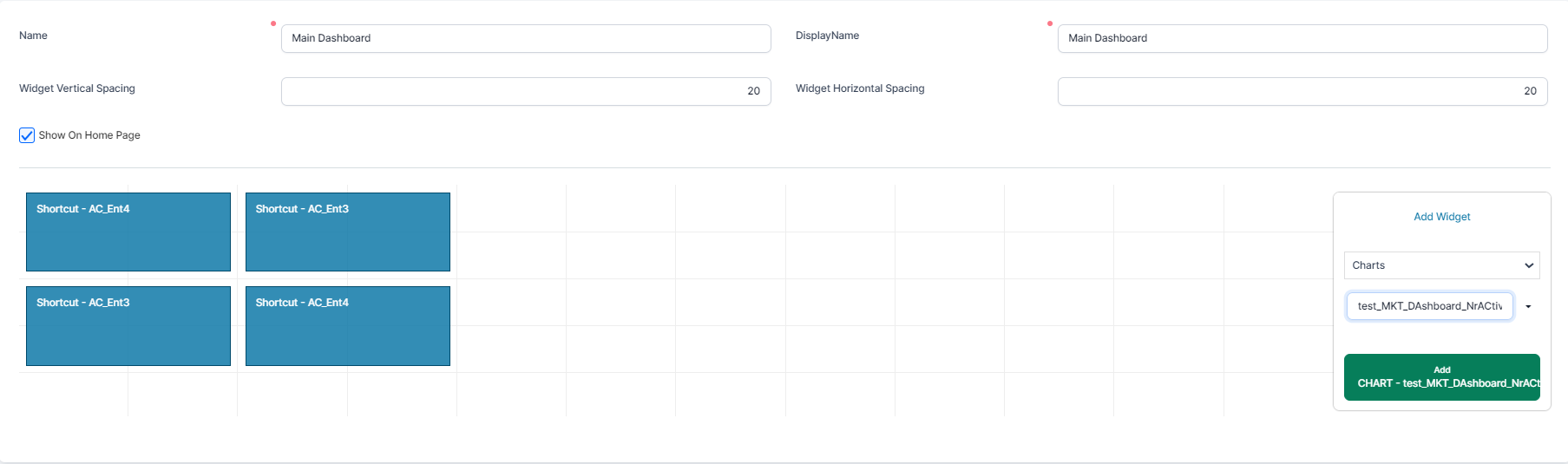 - Add charts to Digital Experience Portal dashboards. Go to the desired dashboard and select the charts widget select the name of the chart and click Add chart as shown below.