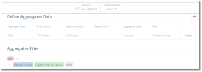 You can add segmentation conditions based on aggregated attributes. This is similar to filtering entities’ attributes. You can define aggregated fields only by using the related entities added in the entity conditions definition section.